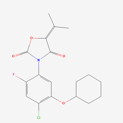 - Synonyms:CHEMBL2269477;DTXSID801122689;3-[4-Chloro-5-(cyclohexyloxy)-2-fluorophenyl]-5-(1-methylethylidene)-2,4-oxazolidinedione;110956-76-8
