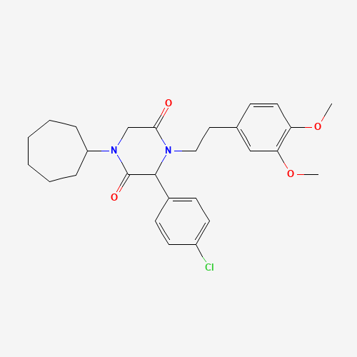 - Name: 3-(4-Chlorophenyl)-1-cycloheptyl-4-[2-(3,4-dimethoxyphenyl)ethyl]piperazine-2,5-dione