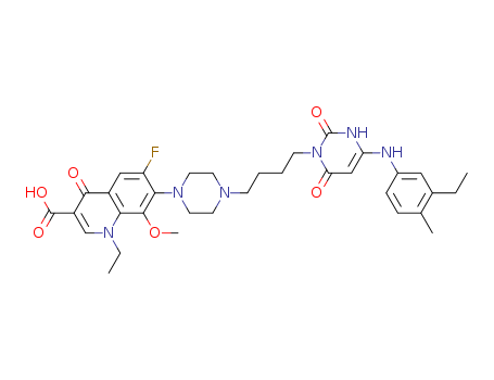 3-{4-[1-(1-{ethyl}-3-carboxy-4-oxo-6-fluoro-8-methoxy-7-quinolyl)-4-piperazinyl]butyl}-6-(3-ethyl-4-methylanilino)uracil(479069-06-2)