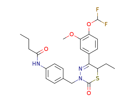 - Name: 3-(4-butyrylaminobenzyl)-5-(3-methoxy-4-difluoromethoxyphenyl)-6-ethyl-3,6-dihydro-1,3,4-thiadiazin-2-one