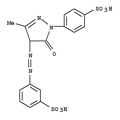 - Synonyms:Benzenesulfonicacid, 3-[[4,5-dihydro-3-methyl-5-oxo-1-(4-sulfophenyl)-1H-pyrazol-4-yl]azo]-(9CI)