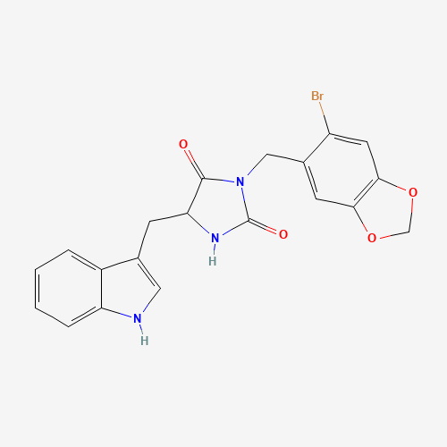- Name: 3-[(6-Bromo-1,3-benzodioxol-5-yl)methyl]-5-(1H-indol-3-ylmethyl)-2,4-imidazolidinedione