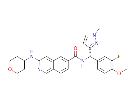 - 1574396-27-2/3-(tetrahydro-pyran-4-ylamino)-isoquinoline-6-carboxylic acid [(S)-(3-fluoro-4-methoxy-phenyl)-(1-methyl-1H-pyrazol-3-yl)-methyl]-amide