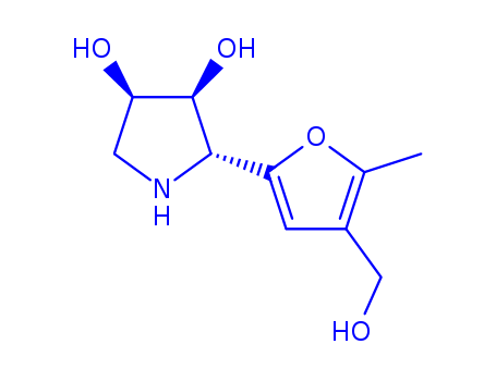 - Synonyms:3,4-Pyrrolidinediol, 2-[4-(hydroxymethyl)-5-methyl-2-furanyl]-, (2R,3S,4R)- (9CI)