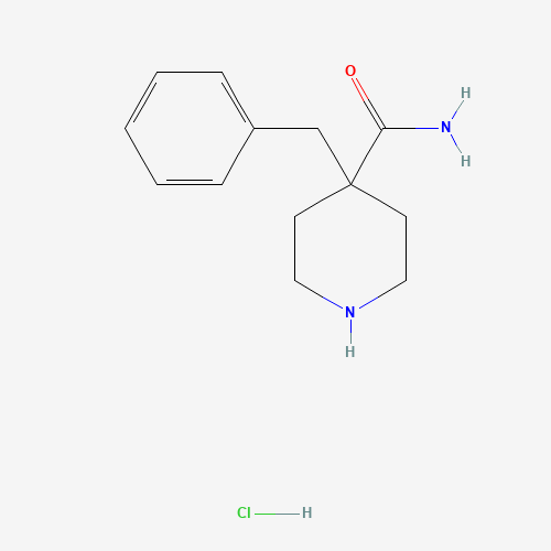 - Synonyms:4-Benzylpiperidine-4-carboxamide hydrochloride;214846-80-7;SCHEMBL8350781;ORXPCBKKGDJHRF-UHFFFAOYSA-N;4-benzyl-piperidine-4-carboxylic acid amide hydrochloride
