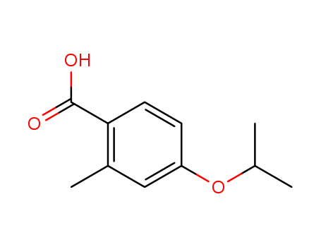 - Synonyms:4-Isopropoxy-2-methylbenzoic acid;111220-35-0;2-methyl-4-propan-2-yloxybenzoic acid;2-methyl-4-(propan-2-yloxy)benzoic acid;SCHEMBL5121870;4-Isopropoxy-2-methylbenzoicacid;FTZOSZBGDBNSEM-UHFFFAOYSA-N;MFCD19309246;AKOS017514237;CS-0196010;E91845;A1-24929
