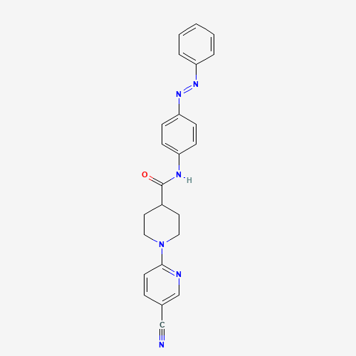 - Synonyms:DTXSID701038336;AKOS002566067;4-Piperidinecarboxamide, 1-(5-cyano-2-pyridinyl)-N-[4-(2-phenyldiazenyl)phenyl]-;927293-75-2