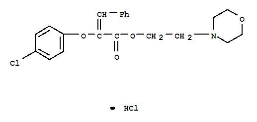- Synonyms:2-Propenoicacid, 2-(4-chlorophenoxy)-3-phenyl-, 2-(4-morpholinyl)ethyl ester,hydrochloride (9CI); Cinnamic acid, a-(p-chlorophenoxy)-, 2-morpholinoethyl esterhydrochloride (8CI); 4-Morpholineethanol, a-(p-chlorophenoxy)cinnamate (ester), hydrochloride(8CI)