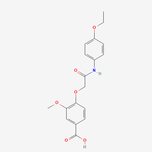 - Synonyms:4-{[(4-ethoxyphenyl)carbamoyl]methoxy}-3-methoxybenzoic acid;522624-56-2;4-[2-(4-ethoxyanilino)-2-oxoethoxy]-3-methoxybenzoic acid;DTXSID001165552;AKOS000114615;CS-0218139;EN300-00220;Z56845260;4-{[(4-ethoxyphenyl)carbamoyl]methoxy}-3-methoxybenzoicacid;Benzoic acid, 4-[2-[(4-ethoxyphenyl)amino]-2-oxoethoxy]-3-methoxy-