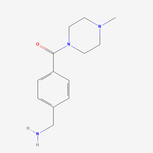 - Synonyms:923242-81-3;4-(4-Methylpiperazinocarbonyl)benzylamine;1-{4-[(4-methylpiperazin-1-yl)carbonyl]phenyl}methanamine;[4-(4-methylpiperazine-1-carbonyl)phenyl]methanamine;[4-(aminomethyl)phenyl]-(4-methylpiperazin-1-yl)methanone;1-[4-[(4-Methylpiperazin-1-yl)carbonyl]phenyl]methanamine;1-(4-[(4-METHYLPIPERAZIN-1-YL)CARBONYL]PHENYL)METHANAMINE;SCHEMBL2377726;MFCD08444570;AKOS000127101;EN300-41038;G26978;{4-[(4-methylpiperazin-1-yl)carbonyl]phenyl}methanamine;Z228584466;(4-(aminomethyl)phenyl)(4-methylpiperazin-1-yl)methanone