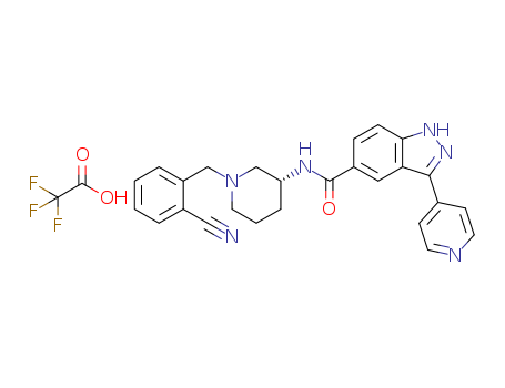 - Synonyms:4-[5-({[(3R)-1-(2-cyanobenzyl)piperidin-3-yl]amino}carbonyl)-1H-indazol-3-yl]pyridinium trifluoroacetate
