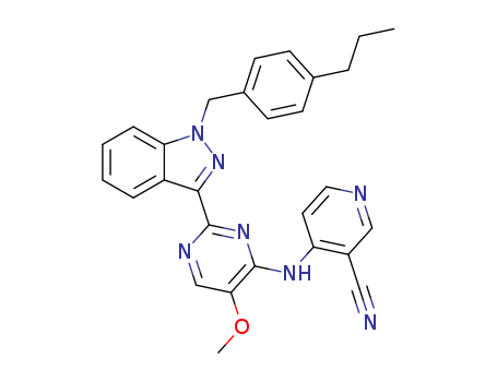 4-[(5-methoxy-2-{1-(4-propylbenzyl)-1H-indazol-3-yl}pyrimidin-4-yl)amino]nicotinonitrile(1429746-79-1)