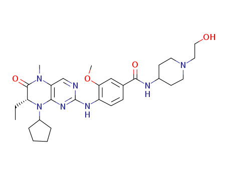 - Synonyms:4-{[(7R)-8-cyclopentyl-7-ethyl-5-methyl-6-oxo-5,6,7,8-tetrahydropteridin-2-yl]amino}-N-[1-(2-hydroxyethyl)piperidin-4-yl]-3-methoxybenzamide