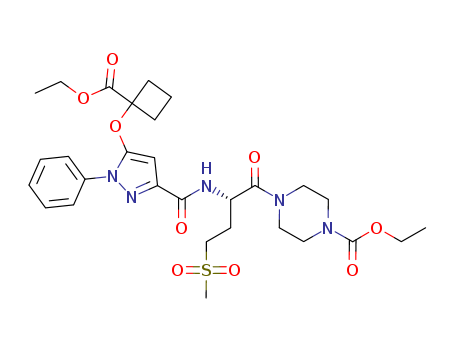 - Synonyms:4-((S)-2-{[5-(1-ethoxycarbonylcyclobutoxy)-1-phenyl-1H-pyrazole-3-carbonyl]amino}-4-methanesulfonylbutyryl)piperazine-1-carboxylic acid ethyl ester