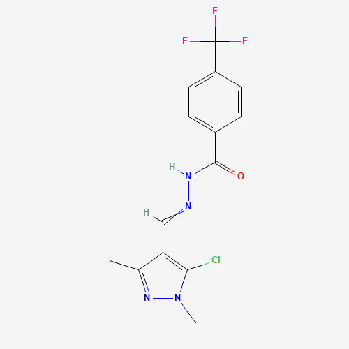 - Synonyms:N'1-[(5-chloro-1,3-dimethyl-1H-pyrazol-4-yl)methylidene]-4-(trifluoromethyl)benzene-1-carbohydrazide;DTXSID301119360;4-(Trifluoromethyl)benzoic acid 2-[(5-chloro-1,3-dimethyl-1H-pyrazol-4-yl)methylene]hydrazide