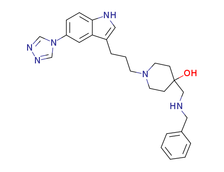 - Synonyms:4-(benzylamino)methyl-4-hydroxy-1-[3-[5-(1,2,4-triazol-4-yl)-1H-indol-3-yl]propyl]piperidine