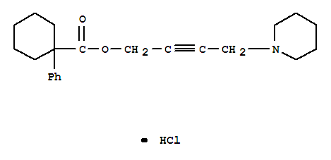- Synonyms:Cyclohexanecarboxylicacid, 1-phenyl-, 4-piperidino-2-butynyl ester hydrochloride (8CI);2-Butyn-1-ol, 4-piperidino-, 1-phenylcyclohexanecarboxylate (ester),hydrochloride (8CI)