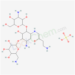 - Name: 4-amino-3-[(6-amino-6-deoxyhexopyranosyl)oxy]-6-[(4-amino-2-hydroxybutyl)amino]-2-hydroxycyclohexyl 3-amino-3-deoxyhexopyranoside sulfate (salt)