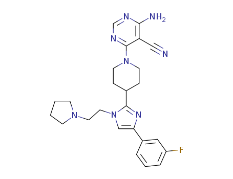 4-amino-6-{4-[4-(3-fluorophenyl)-1-(2-pyrrolidin-1-ylethyl)-1H-imidazol-2-yl]piperidin-1-yl}pyrimidin-5-carbonitrile(1428251-99-3)
