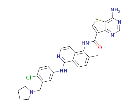 - Name: 4-amino-N-(1-((4-chloro-3-(pyrrolidin-1-ylmethyl)phenyl)amino)-6-methylisoquinolin-5-yl)thieno[3,2-d]pyrimidine-7-carboxamide