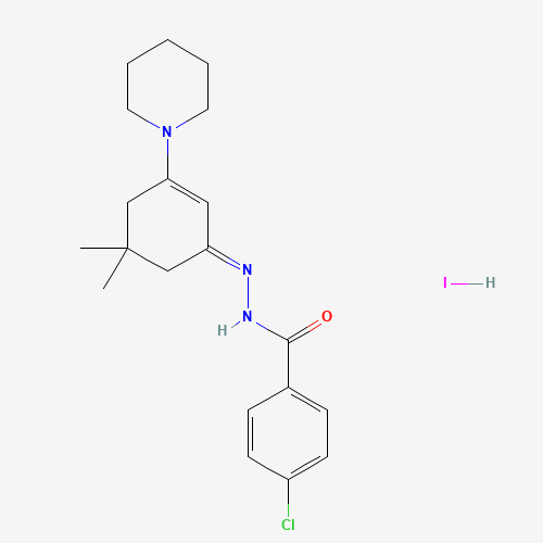 - Name: 4-chloro-N-[(E)-(5,5-dimethyl-3-piperidin-1-ylcyclohex-2-en-1-ylidene)amino]benzamide;hydroiodide