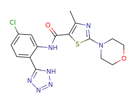- Synonyms:4-methyl-2-morpholin-4-yl-thiazole-5-carboxylic acid [5-chloro-2-(1H-tetrazol-5-yl)-phenyl]-amide