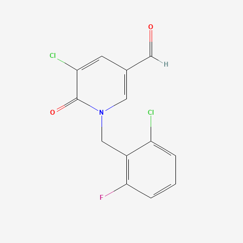 - Synonyms:1033463-20-5;5-chloro-1-(2-chloro-6-fluorobenzyl)-6-oxo-1,6-dihydro-3-pyridinecarbaldehyde;5-Chloro-1-(2-chloro-6-fluorobenzyl)-6-oxo-1,6-dihydropyridine-3-carbaldehyde;5-chloro-1-[(2-chloro-6-fluorophenyl)methyl]-6-oxopyridine-3-carbaldehyde;SCHEMBL15332339;DTXSID301125240;MFCD10758058;AKOS005071860;BC-0713;CS-0339742;5-Chloro-1-[(2-chloro-6-fluorophenyl)methyl]-1,6-dihydro-6-oxo-3-pyridinecarboxaldehyde;5-chloro-1-[(2-chloro-6-fluorophenyl)methyl]-6-oxo-1,6-dihydropyridine-3-carbaldehyde