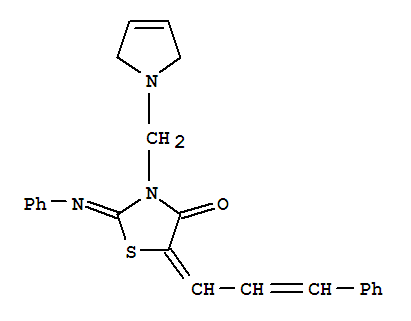 - Synonyms:4-Thiazolidinone,3-[(2,5-dihydro-1H-pyrrol-1-yl)methyl]-2-(phenylimino)-5-(3-phenyl-2-propenylidene)-(9CI)