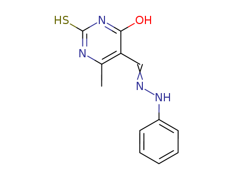 - Name: 5-Pyrimidinecarboxaldehyde, 1,2,3,4-tetrahydro-6-methyl-4-oxo-2-thioxo-, 5-(phenylhydrazone)