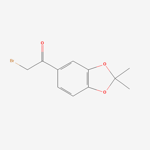 - Synonyms:97664-56-7;5-(2-bromoacetyl)-2,2-dimethyl-1,3-benzodioxole;SCHEMBL10419639;GMNHNZHVFJFQDZ-UHFFFAOYSA-N;DTXSID601213658;2-bromo-1-(2,2-dimethyl-1,3-benzodioxol-5-yl)ethanone