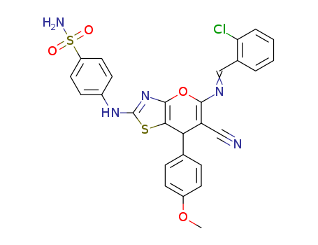 - Synonyms:5-(2-chlorobenzylideneamino)-6-cyano-7H-7-(4-methoxyphenyl)-2-(4-sulphamoylphenylamino)pyrano[2,3-d]thiazole