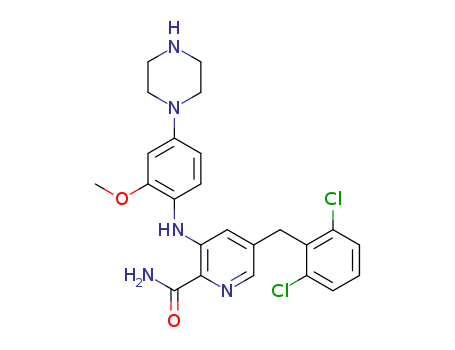 - Synonyms:5-(2,6-dichlorobenzyl)-3-{[2-methoxy-4-(piperazin-1-yl)phenyl]amino}pyridine-2-carboxamide