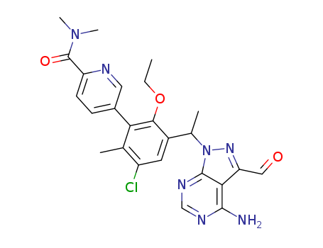- Synonyms:5-{3-[1-(4-amino-3-formyl-1H-pyrazolo[3,4-d]pyrimidin-1-yl)ethyl]-5-chloro-2-ethoxy-6-methylphenyl}-N,N-dimethylpyridine-2-carboxamide