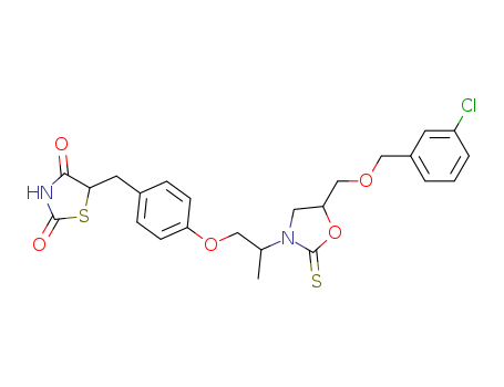 - Synonyms:5-{4-[2-(5-3'-chlorobenzyloxymethyl-2-thioxooxazolidin-3-yl)propoxy]benzyl}thiazolidine-2,4-dione