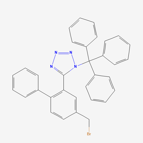 - Synonyms:159532-62-4;5-(4-(Bromomethyl)-[1,1'-biphenyl]-2-yl)-1-trityl-1H-tetrazole;5-[4-(bromomethyl)-[1,1'-biphenyl]-2-yl]-1-(triphenylmethyl)-1H-1,2,3,4-tetrazole;SCHEMBL588221;BIMWFHVLFZYVIE-UHFFFAOYSA-N;DTXSID201150369;AKOS022182802;DB-007790;N-Triphenylmethyl-5-(4-bromomethylbiphenyl-2-yl)tetrazole;5-[4-(bromomethyl)[1,1'-biphenyl]-2-yl]-1-triphenylmethyl-1H-tetrazole;5-[4-(Bromomethyl)[1,1a(2)-biphenyl]-2-yl]-1-(triphenylmethyl)-1H-tetrazole