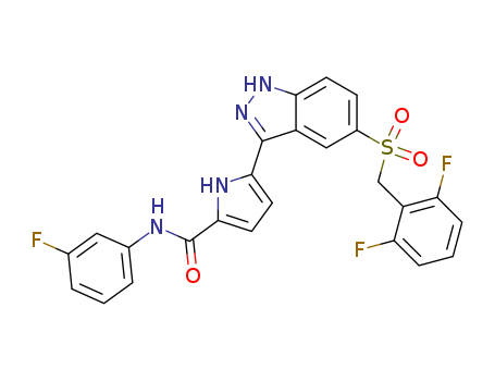 - Name: 5-[5-(2,6-difluoro-phenylmethanesulfonyl)-1H-indazol-3-yl]-1H-pyrrole-2-carboxylic acid (3-fluoro-phenyl)-amide