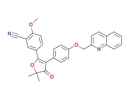 - Synonyms:5-(5,5-dimethyl-4-oxo-3-(4-(quinolin-2-ylmethoxy)phenyl)-4,5-dihydrofuran-2-yl)-2-methoxybenzonitrile