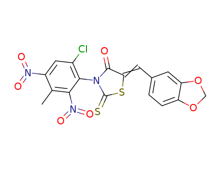- 68142-67-6/5-(Z)-benzo[1,3]dioxol-5-ylmethylene-3-(6-chloro-3-methyl-2,4-dinitro-phenyl)-2-thioxo-thiazolidin-4-one