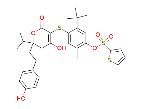 5-tert-butyl-4-({6-hydroxy-2-[2-(4-hydroxyphenyl)ethyl]-2-(1-methylethyl)-4-oxo-3,4-dihydro-2H-pyran-5-yl}sulfanyl)-2-methylphenyl thiophene-2-sulfonate(263842-85-9)