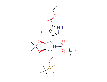 5H-1,3-Dioxolo4,5-cpyrrole-5-carboxylic acid, 4-4-amino-5-(ethoxycarbonyl)-1H-pyrrol-3-yl-6-(1,1-dimethylethyl)dimethylsilyloxymethyltetrahydro-2,2-dimethyl-, 1,1-dimethylethyl ester, (3aS,4S,6R,6aR)-(284490-15-9)