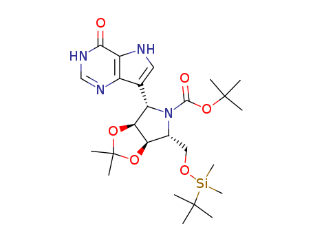 - Synonyms:5H-1,3-Dioxolo[4,5-c]pyrrole-5-carboxylicacid,4-(4,5-dihydro-4-oxo-1H-pyrrolo[3,2-d]pyrimidin-7-yl)-6-[[[(1,1-dimethylethyl)dimethylsilyl]oxy]methyl]tetrahydro-2,2-dimethyl-,1,1-dimethylethyl ester, (3aS,4S,6R,6aR)- (9CI)