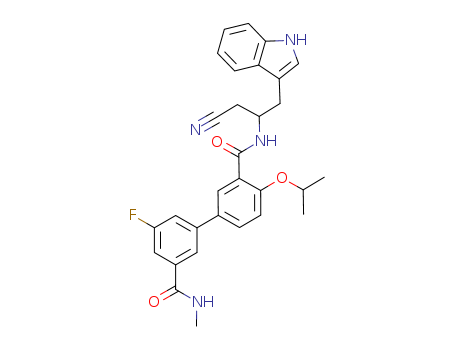 - 1108612-28-7/5'-fluoro-4-isopropoxy-biphenyl-3,3'-dicarboxylic acid 3-{[2-cyano-1-(1H-indol-3-ylmethyl)-ethyl]-amide}3'-methylamide