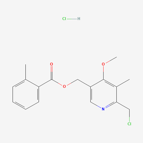 - Synonyms:1215661-49-6;6-Chloromethyl-4-methoxy-5-methyl-3-pyridylmethanol o-Toluate Hydrochloride;o-Toluic Acid (4-Methoxy-6-chloroMethyl-5-Methyl-3-pyridinyl)Methyl Ester Hydrochl;[6-(chloromethyl)-4-methoxy-5-methylpyridin-3-yl]methyl 2-methylbenzoate;hydrochloride;DTXSID60675758;6-Chloromethyl-4-methoxy-5-methyl-3-pyridylmethanol o-Toluate;[6-(Chloromethyl)-4-methoxy-5-methylpyridin-3-yl]methyl 2-methylbenzoate--hydrogen chloride (1/1)