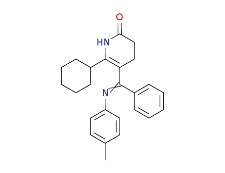 - Synonyms:6-Cyclohexyl-5-{phenyl-[(E)-p-tolylimino]-methyl}-3,4-dihydro-1H-pyridin-2-one