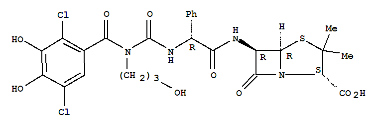 - Synonyms:6-(2-(3-(2,5-dichloro-3,4-dihydroxybenzoyl)-3-(3-hydroxypropyl)-1-ureido)-2-phenylacetamido)penicillanic acid