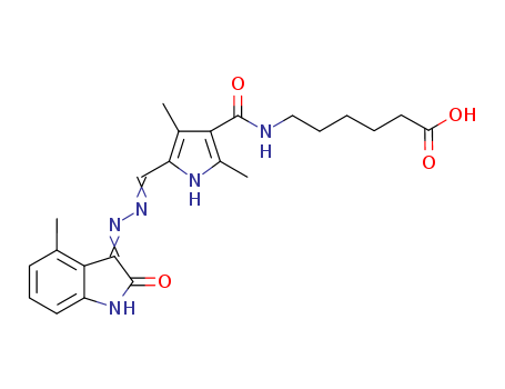 - Synonyms:6-(5-(((4-methyl-2-oxoindolin-3-ylidene)hydrazono)methyl)-2,4-dimethyl-1H-pyrrole-3-carboxamido)hexanoic acid