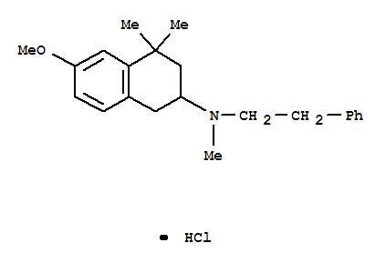 - Synonyms:2-Naphthalenamine,1,2,3,4-tetrahydro-6-methoxy-N,4,4-trimethyl-N-(2-phenylethyl)-, hydrochloride(9CI); 2-Naphthylamine,1,2,3,4-tetrahydro-6-methoxy-N,4,4-trimethyl-N-phenethyl-, hydrochloride (8CI);N-Methyl-N-(b-phenethyl)-1,2,3,4-tetrahydro-6-methoxy-4,4-dimethyl-2-naphthylaminehydrochloride; N-Methyl-N-(b-phenylethyl)-1,2,3,4-tetrahydro-6-methoxy-4,4-dimethyl-2-naphthylaminehydrochloride