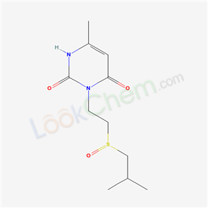- Synonyms:2,4(1H,3H)-Pyrimidinedione,6-methyl-3-(2-((2-methylpropyl)sulfinyl)ethyl);3-Isobutylsulfinylethyl-6-methyluracil;6-Methyl-3-(2-((2-methylpropyl)sulfinyl)ethyl)-2,4(1H,3H)-pyrimidinedione;6-METHYL-3-(2-((2-METHYLPROPYL)SULFINYL)ETHYL)URACIL;