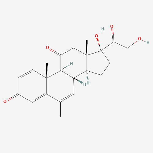 - Synonyms:6,7-Didehydro-11-keto methylprednisolone;UNII-7S5HEH87YT;7S5HEH87YT;Pregna-1,4,6-triene-3,11,20-trione, 17,21-dihydroxy-6-methyl-;97116-40-0;SCHEMBL11843344;Q27268783