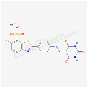 - Name: 7-Benzothiazolesulfonic acid, 2-(4-((hexahydro-2,4,6-trioxo-5-pyrimidinyl)azo)phenyl)-6-methyl-, monosodium salt